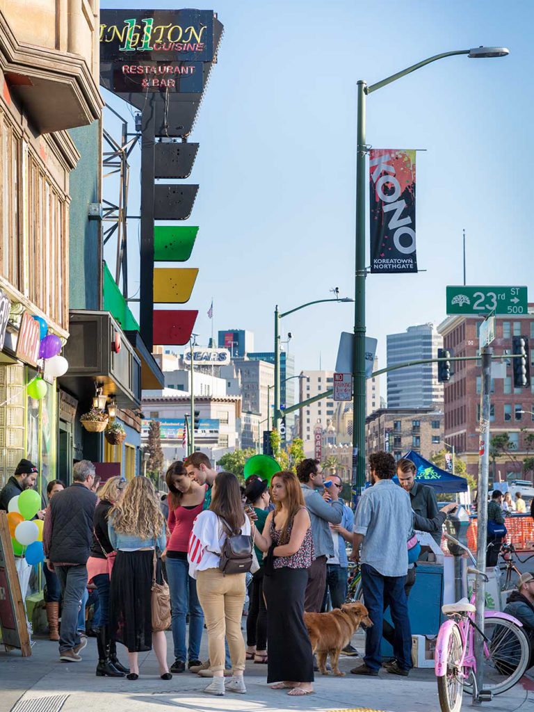 The hip new downtown area of Oakland is a new development of the last few years in response to former Mayor Jerry Brown’s promise to bring 10,000 new people to downtown Oakland. Once Oakland’s main shopping district (you can still see the great art deco I. Magnin building), it stretches along Broadway and Telegraph Avenues, from 16th Street on up to Grand Avenue. The newly refurbished Paramount Theater on Broadway and Fox Theater on Telegraph are the anchors, surrounded by a ton of trendy restaurants and new condo and apartment complexes.